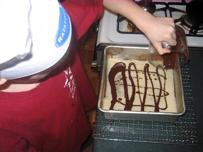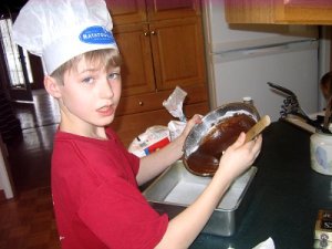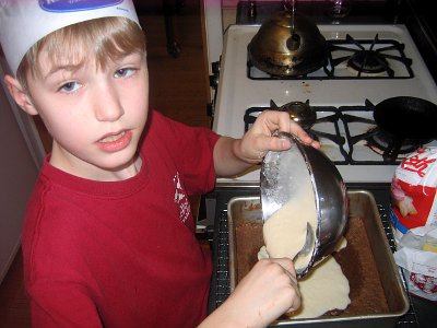 What inspired B9 the most was the recipe for Double Deckers. Included on the back cover, he was very keen to try it out. Finally I had all the ingredients and he made it last week. It is indeed rich and delicious. He cut it into 30 portions and is determined that no-one will have more than one a day. I tried several angles to be awarded a second serve, apparently the girls did too, but it didn’t happen!