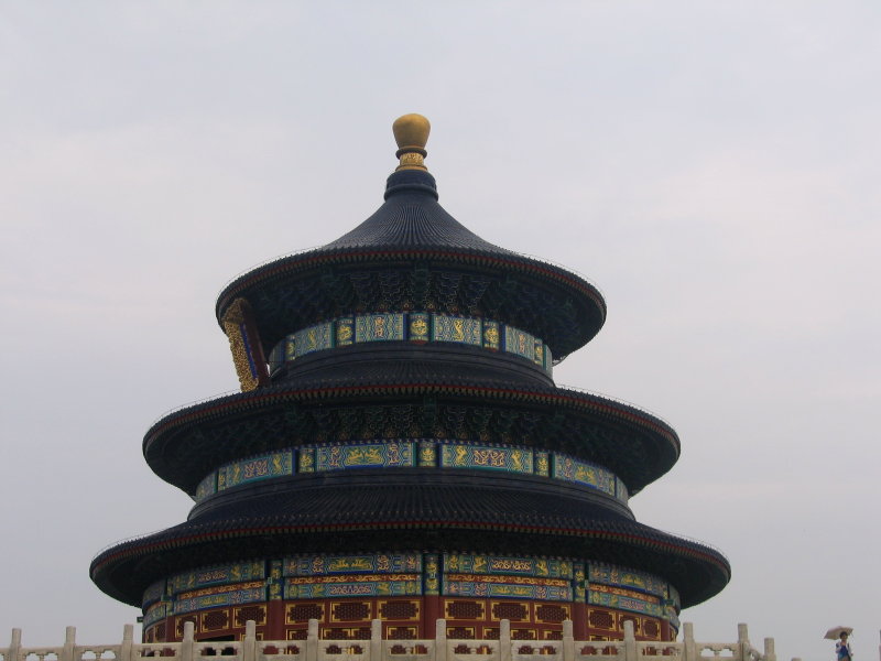 Yesterday’s tour was to the Temple of Heaven which is surrounded by a park where many people were involved in weekend leisure activities.  We passed a group doing ballroom dancing, a group doing tai chi with paddles and balls, many playing a version of hacksac where the sack was actually a few disks attached to feathers.  As we moved through towards the Temple we encountered musicians, dancers and singers and realised we should be playing there ourselves.  The temple itself was very elaborate as were the surrounding buildings.  (photos are from the Temple of Heaven)