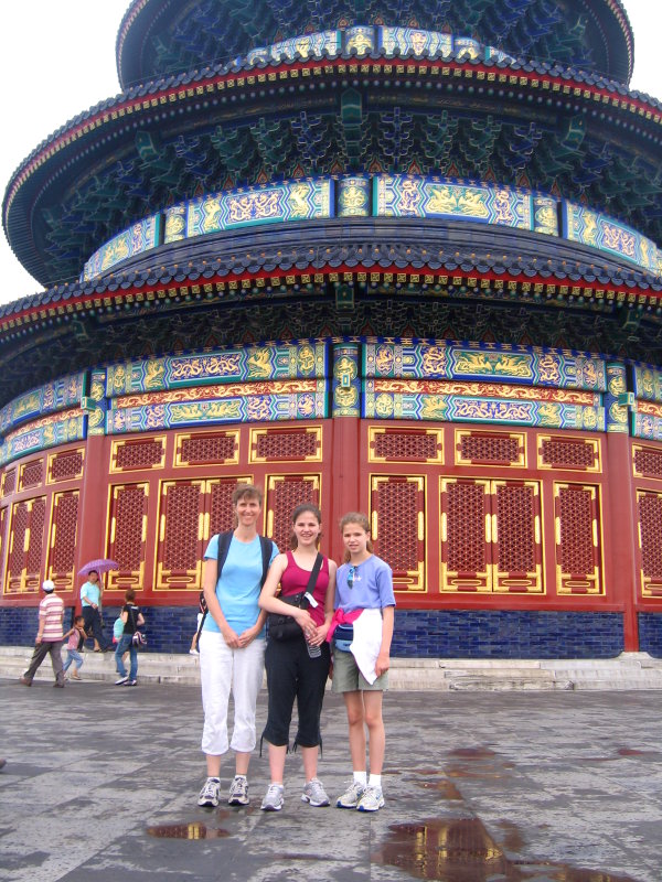 We have had two touring days now and have seen beautiful palaces, courtyards and gardens.  On the first morning we headed to Tian’anmen Square and gazed around at the thousands of people there.  Our guide is a wealth of knowledge and although I am retaining some I really need to be constantly with a notepad to get it all.  From the square we entered the Fobidden City (Palace Museum) which was the residence of the ancient emporers.  We crossed threshold after threshold to enter courtyard after courtyard to see yet another beautiful building.  It was extremely hot and humid.  Just as we felt we could not last much longer we crossed over yet another threshold into the garden for the Imperial family.  This was where they could relax and play.  The trees and water made it just that little but cooler and very pretty.