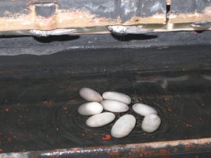 Silk cocoons are also made into light, warm comforters.  Double cocoons are selected and instead of finding an end to the thread and spinning it, each cocoon is stretched out over and over again.  Once the cocoon has been stretched out to resemble cobwebs it is laid down and more stretched cocoons laid one at a time over the top.  The result is a very light, but hopefully very warm doona (comforter, duvet).  I bought one but yet to use it.