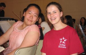 While in Shanghai we participated in two exchanges with young Chinese musicians.  The first was at the Shanghai Children’s Palace, a facility which comes alive every weekend when hundreds of children arrive to attend music, art and other extra curricular activities.  We joined a young orchestra at their rehearsal.  We were able to play a few pieces for them and listen to some of theirs.  We discovered that Hungarian Dance was part of their repetoire so the Intermediate Performance Group joined in and everyone played together.  There was time at the end for a bit of conversation between the musicians.