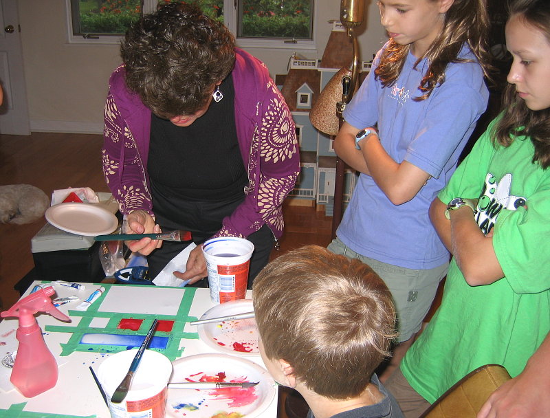 …this time with watercolours. Our group resumed last week with a painting lesson. I have an artist friend who is just wonderful at inspiring children to create their own works of art. She came and spent a little over two hours introducing the group to watercolours. We could have spent twice as long, it was such a great session. The first project was simply to see what watercolour paints do when added to the wet watercolour paper. The children were all encouraged to, “see the magic”, a phrase which has crept into conversation at our place several times since the lesson. Watching the colours blend and bleed into each other was indeed magical.