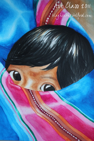 P16 chose to paint a watercolour of a Peruvian child bundled in a traditional blanket.