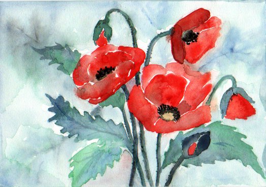 Poppies:  This is my third attempt at poppies, the first two are not worth posting.  It is not exactly what I want so there will be more attempts in the future   (April 2010)