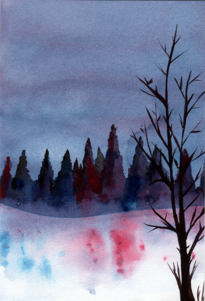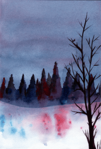 Purple snowscape  – the colour scheme on this one is also a little strange; blood stains on the snow!?  (Feb 2010)