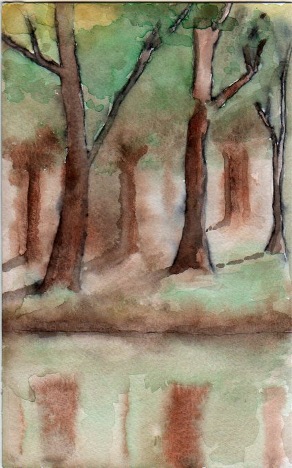 Tree Reflections (Pen with watercolour wash)  April 2010